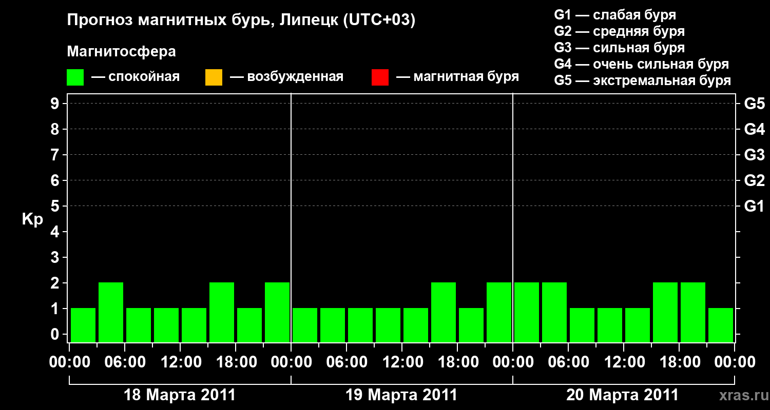 Прогноз магнитных бурь в Липецке — 18 марта 2011 года