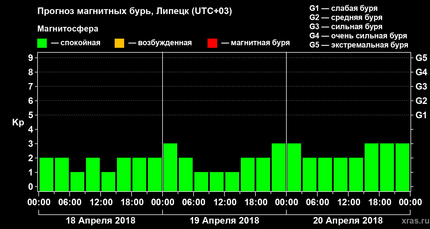 Прогноз магнитных бурь в Липецке на 18 апреля 2018 года