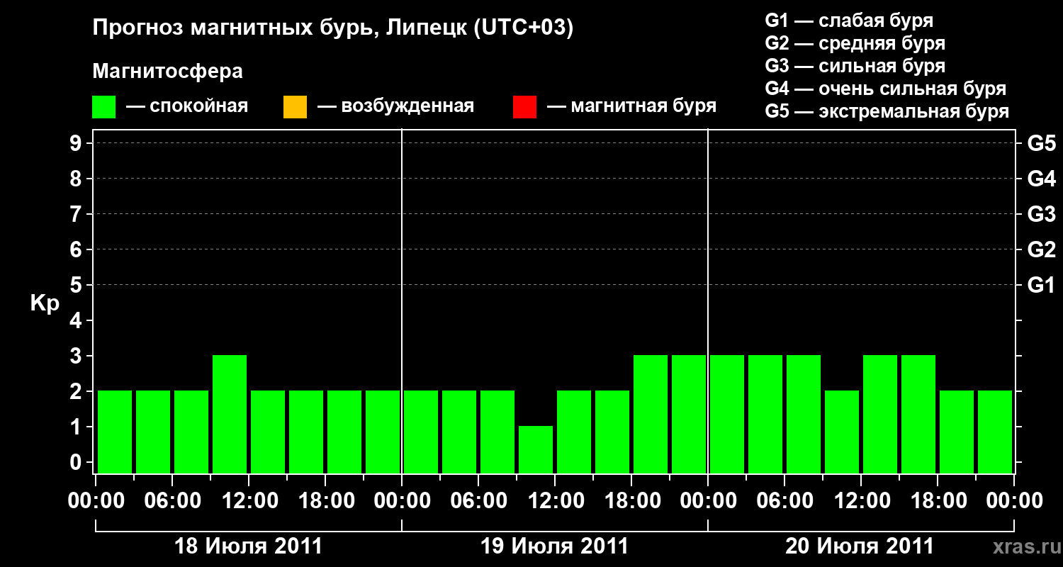 Прогноз магнитных бурь в Липецке — 18 июля 2011 года