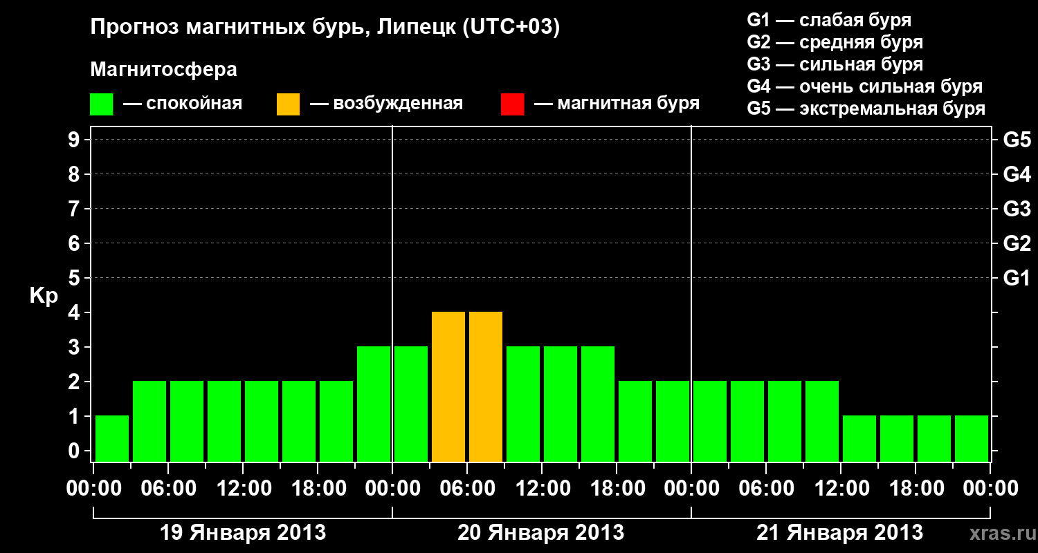 Прогноз магнитных бурь в Липецке — 19 января 2013 года