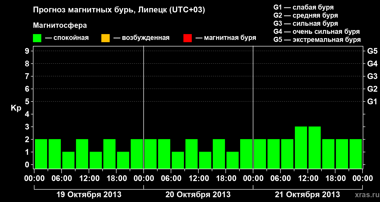 Прогноз магнитных бурь в Липецке на 19 октября 2013 года