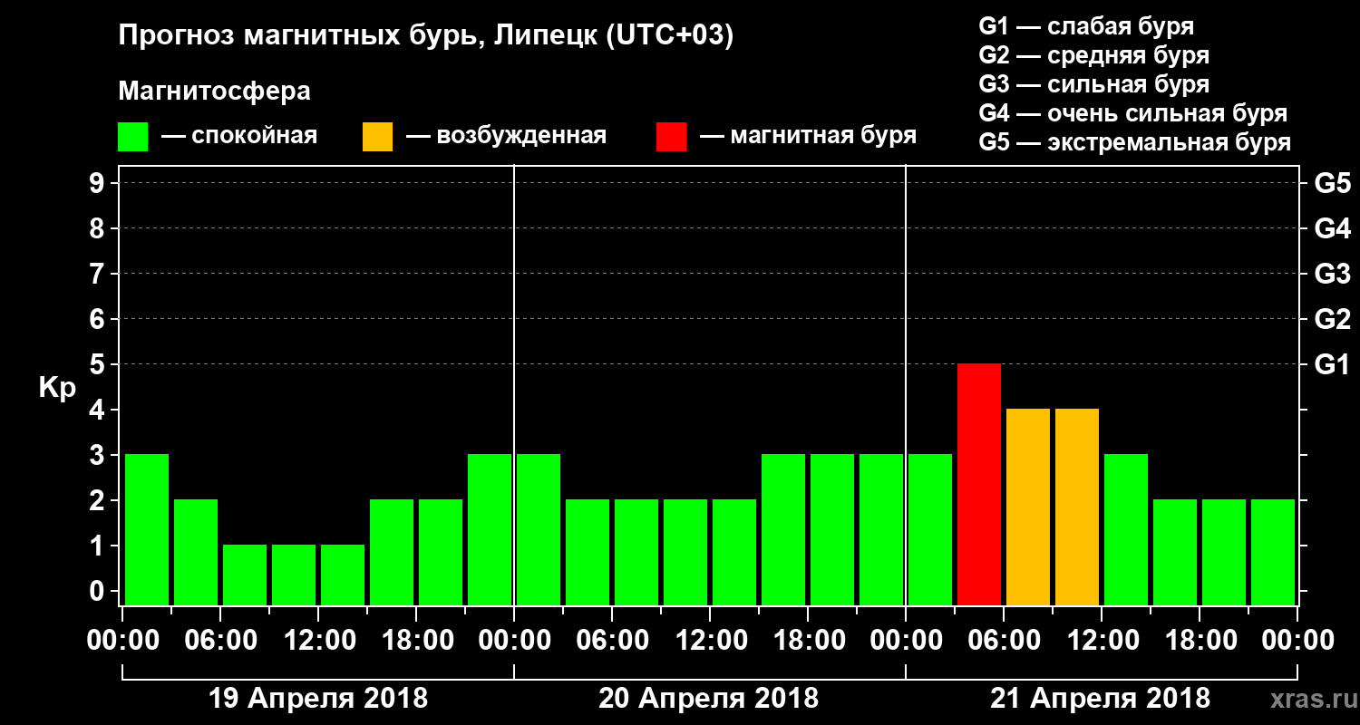 Прогноз магнитных бурь в Липецке на 19 апреля 2018 года
