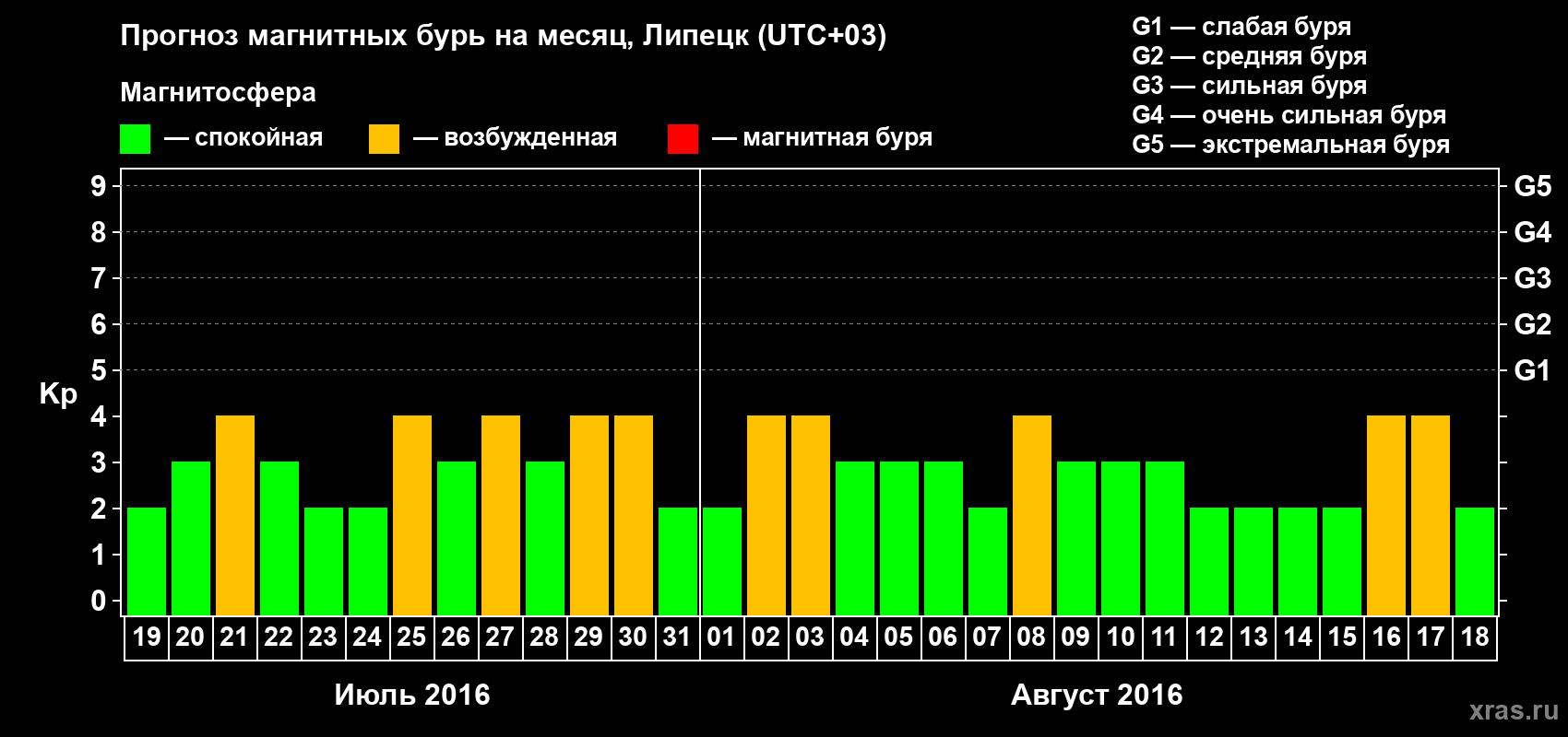 Прогноз магнитных бурь в Липецке — 19 июля 2016 года