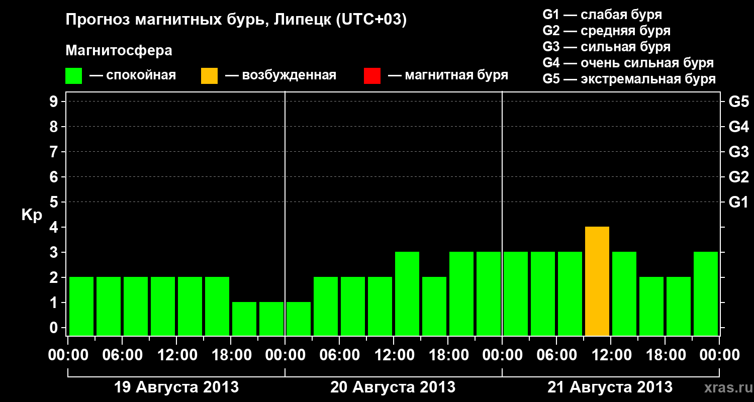 Прогноз магнитных бурь в Липецке — 19 августа 2013 года
