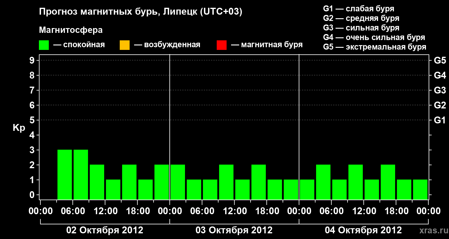 Прогноз магнитных бурь в Липецке на 2 октября 2012 года