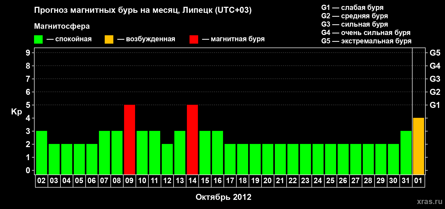 Прогноз магнитных бурь в Липецке — 2 октября 2012 года