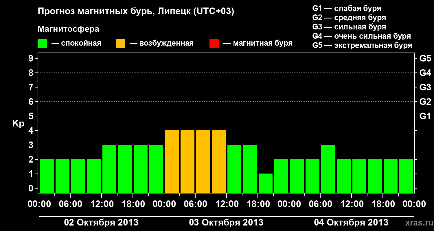 Прогноз магнитных бурь в Липецке — 2 октября 2013 года