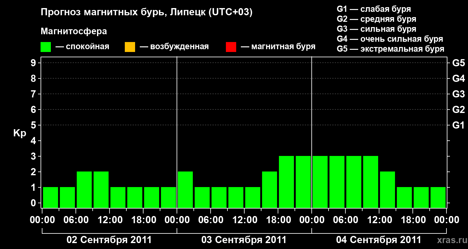 Прогноз магнитных бурь в Липецке — 2 сентября 2011 года