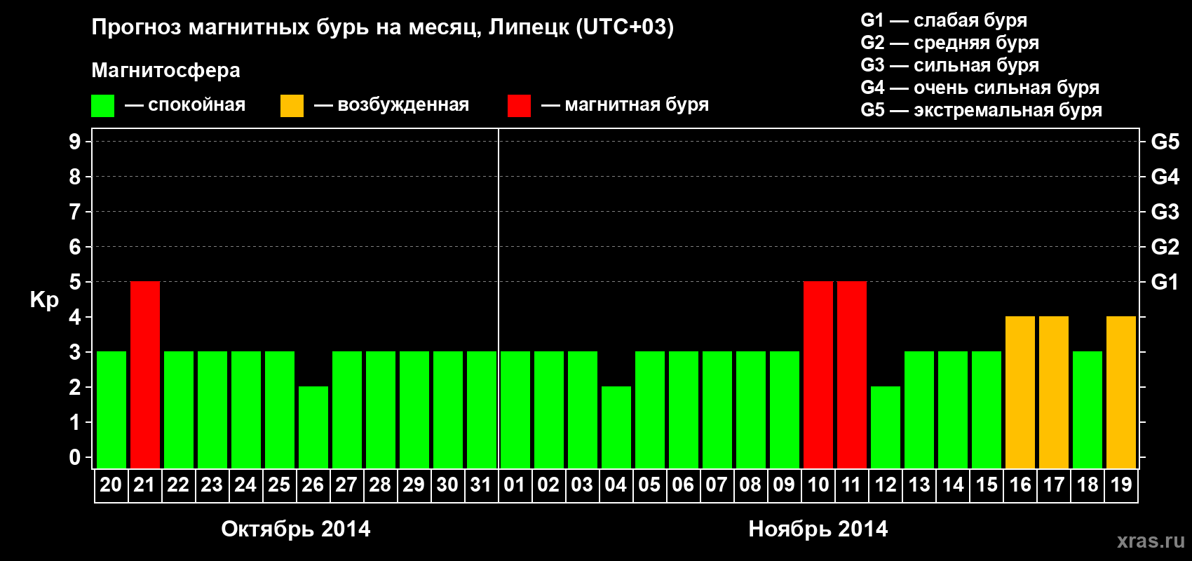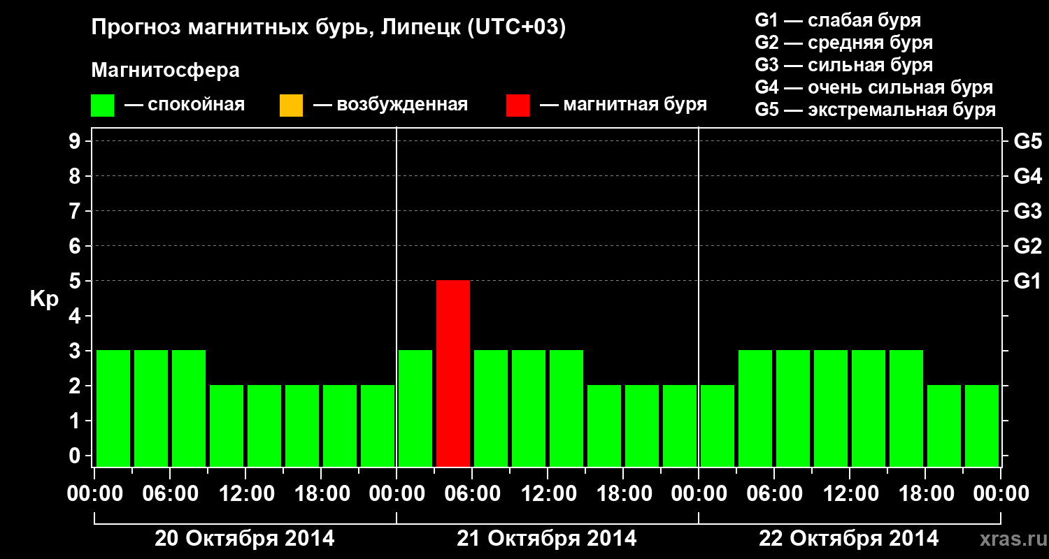 Прогноз магнитных бурь в Липецке на 20 октября 2014 года