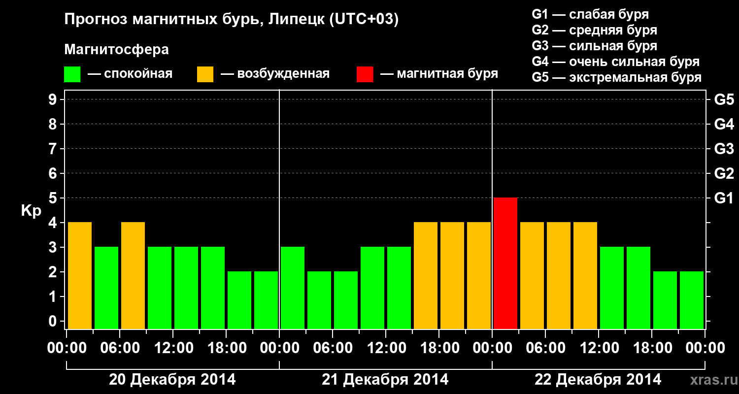 Прогноз магнитных бурь в Липецке — 20 декабря 2014 года