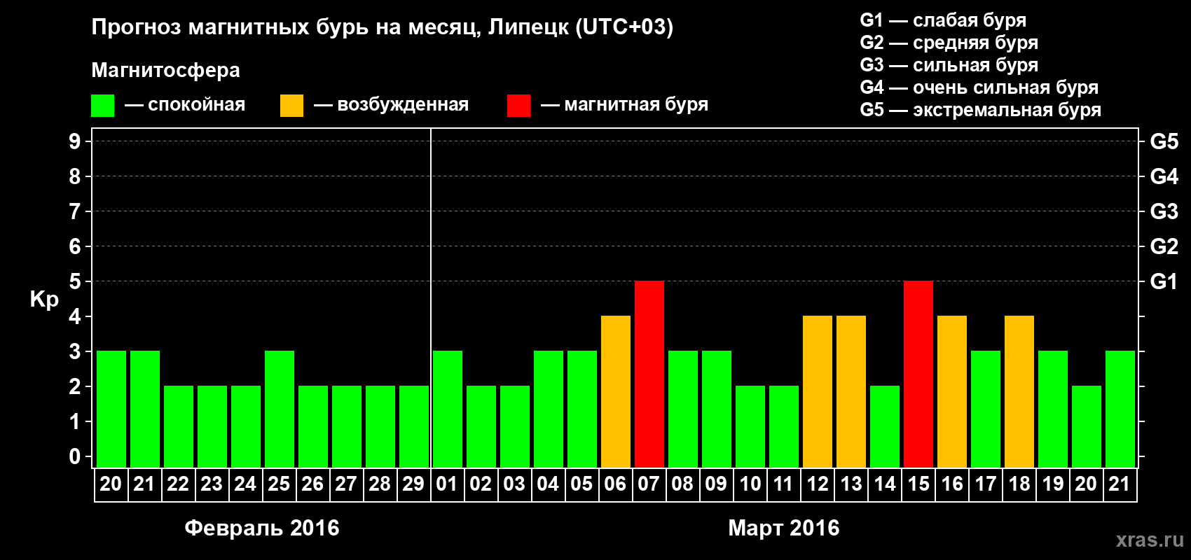 Прогноз магнитных бурь в Липецке на 20 февраля 2016 года