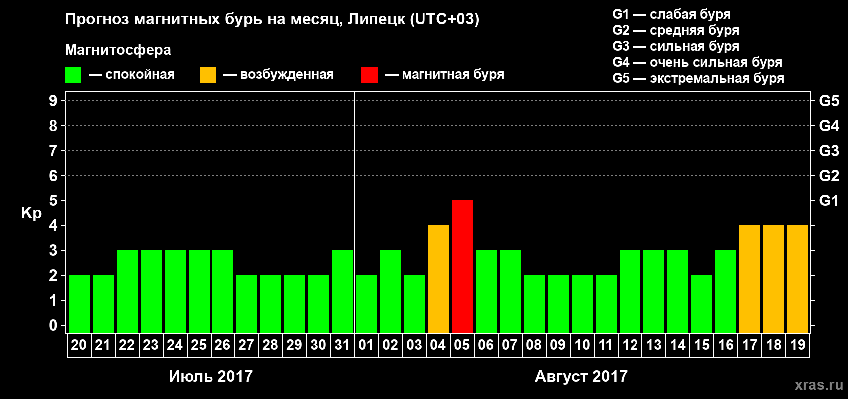 Прогноз магнитных бурь в Липецке — 20 июля 2017 года