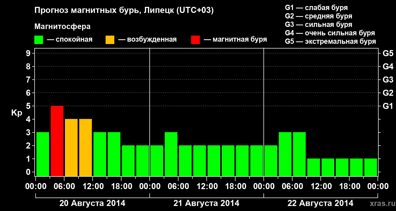Прогноз магнитных бурь в Липецке — 20 августа 2014 года
