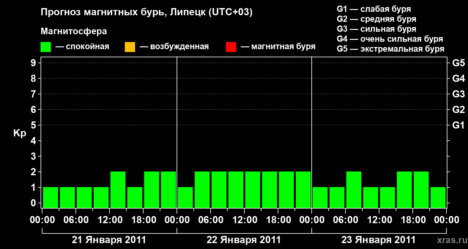 Прогноз магнитных бурь в Липецке на 21 января 2011 года