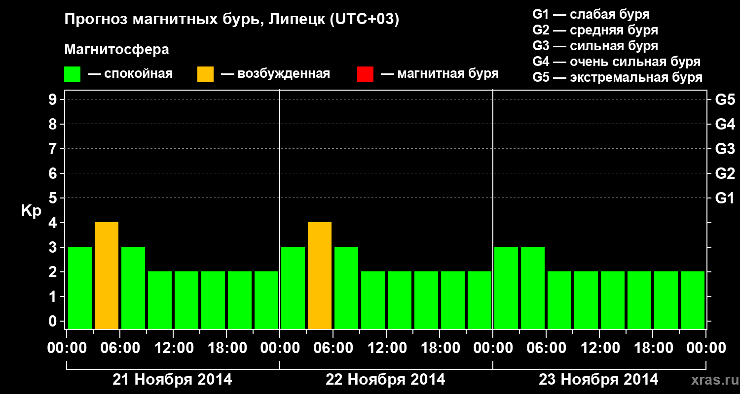 Прогноз магнитных бурь в Липецке — 21 ноября 2014 года