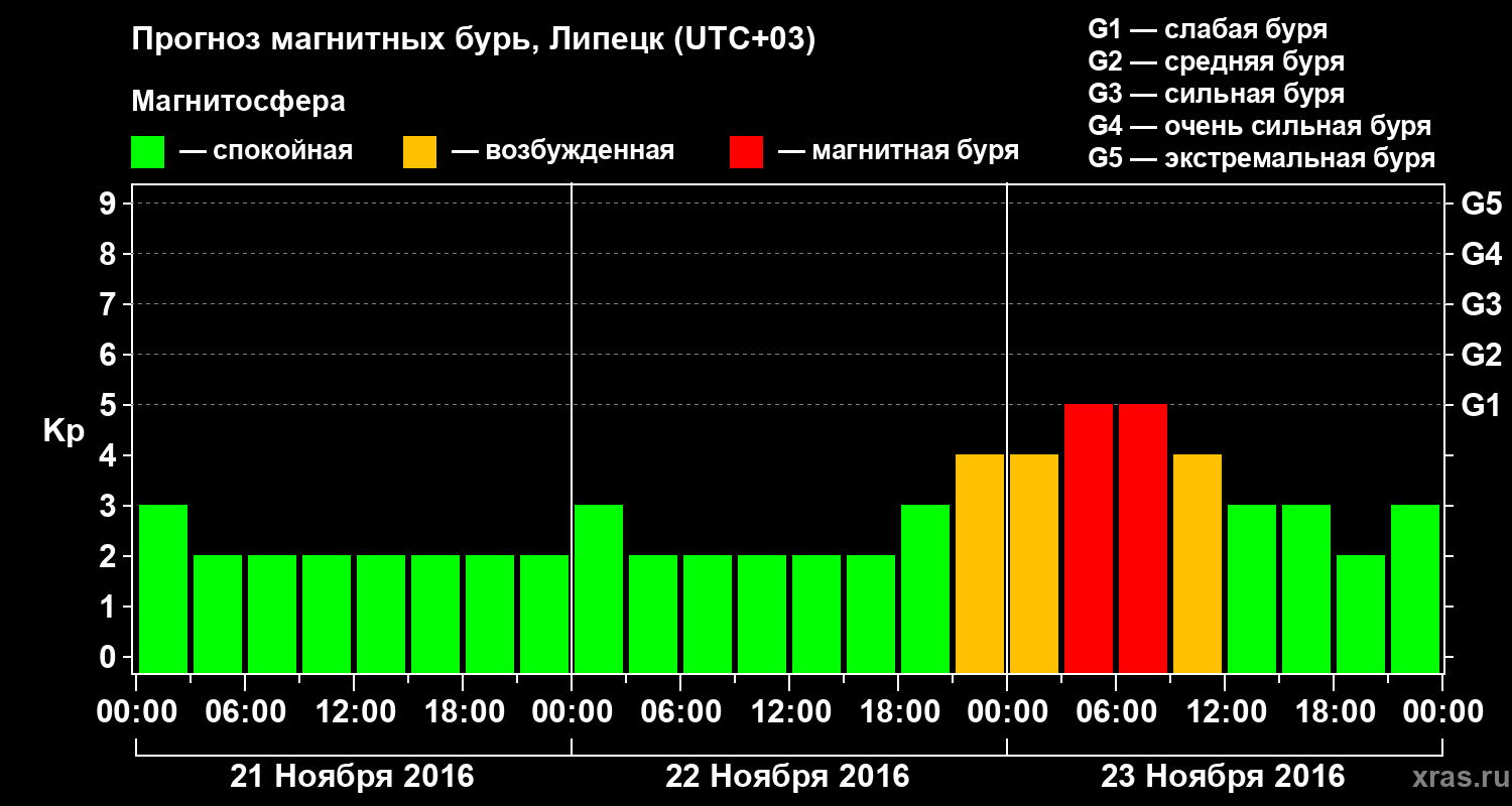 Прогноз магнитных бурь в Липецке — 21 ноября 2016 года