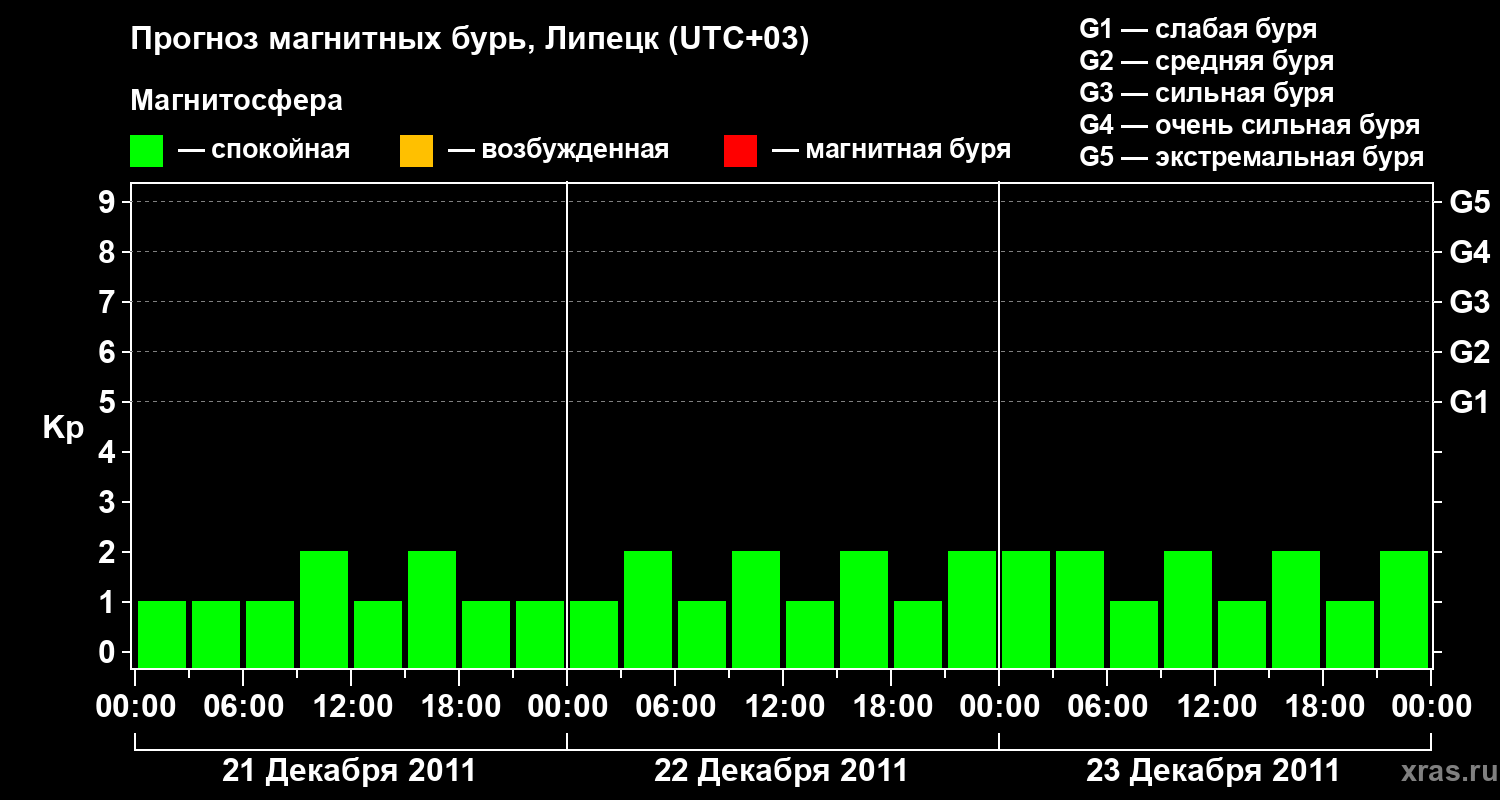 Прогноз магнитных бурь в Липецке — 21 декабря 2011 года