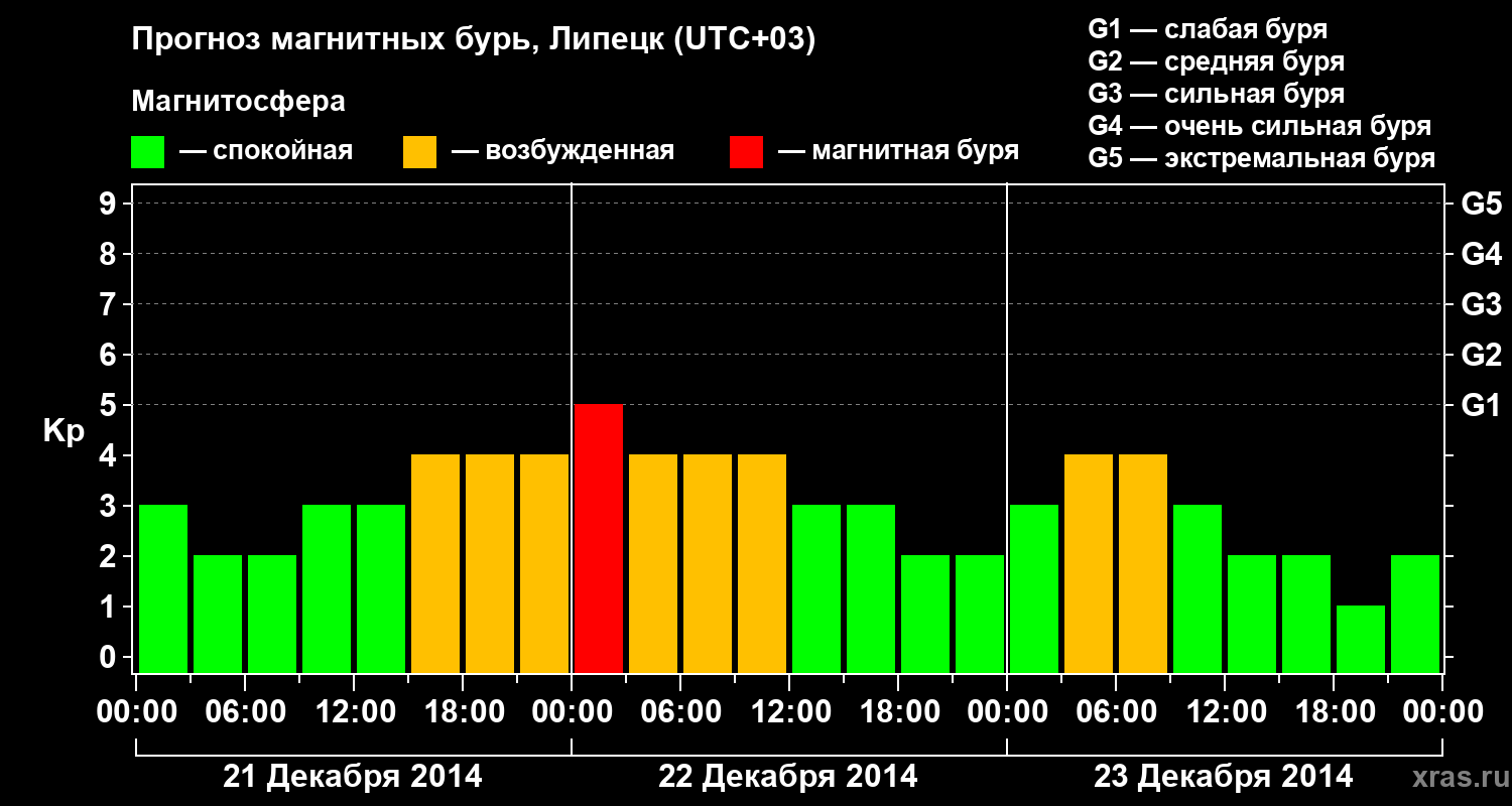 Прогноз магнитных бурь в Липецке — 21 декабря 2014 года