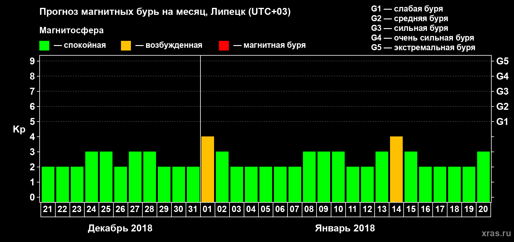Прогноз магнитных бурь в Липецке — 21 декабря 2017 года