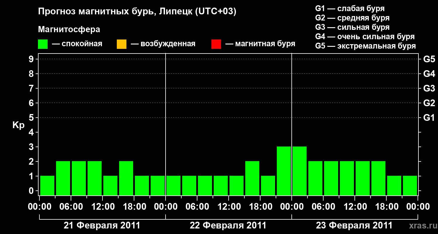 Прогноз магнитных бурь в Липецке — 21 февраля 2011 года