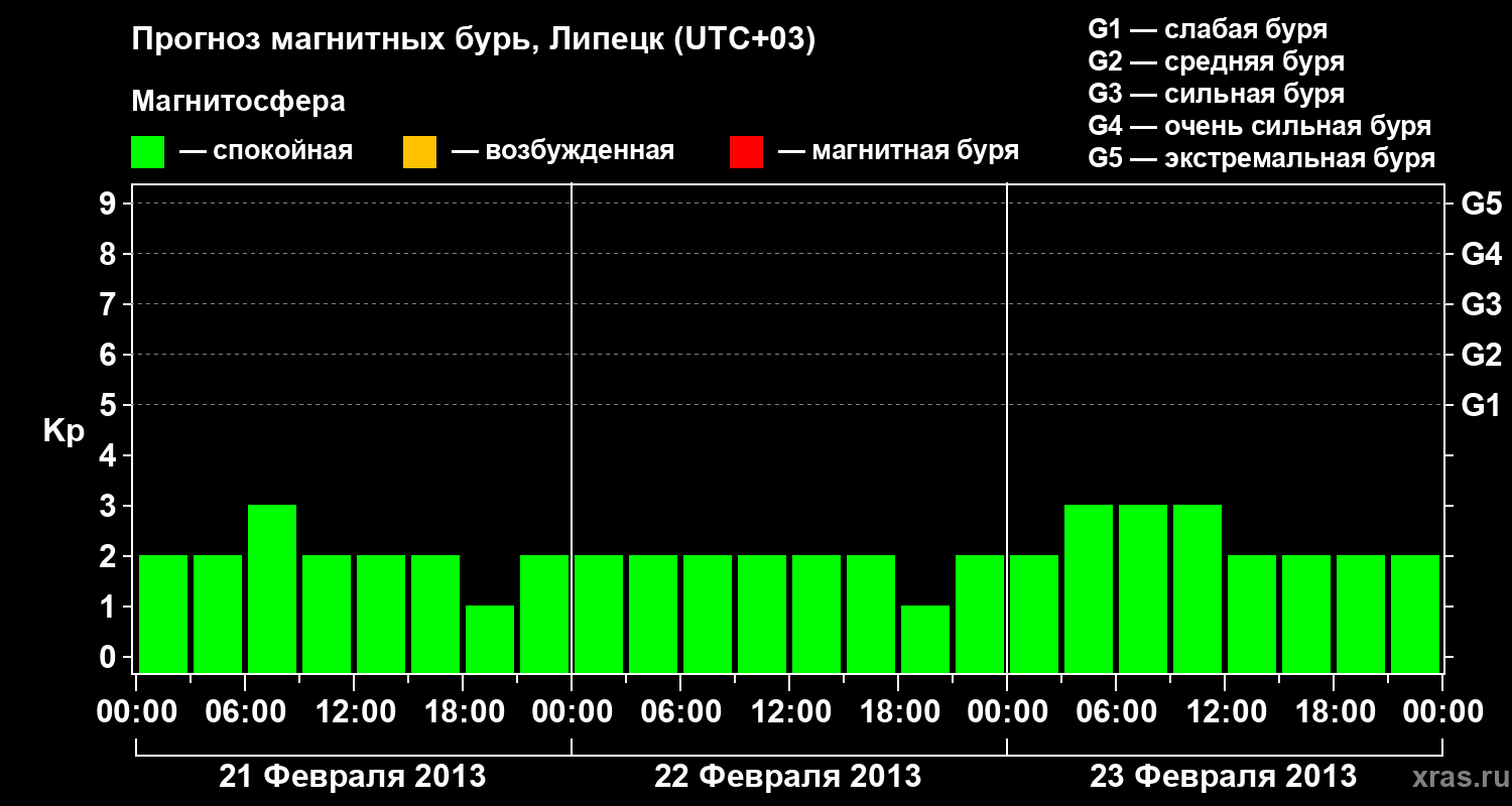 Прогноз магнитных бурь в Липецке — 21 февраля 2013 года