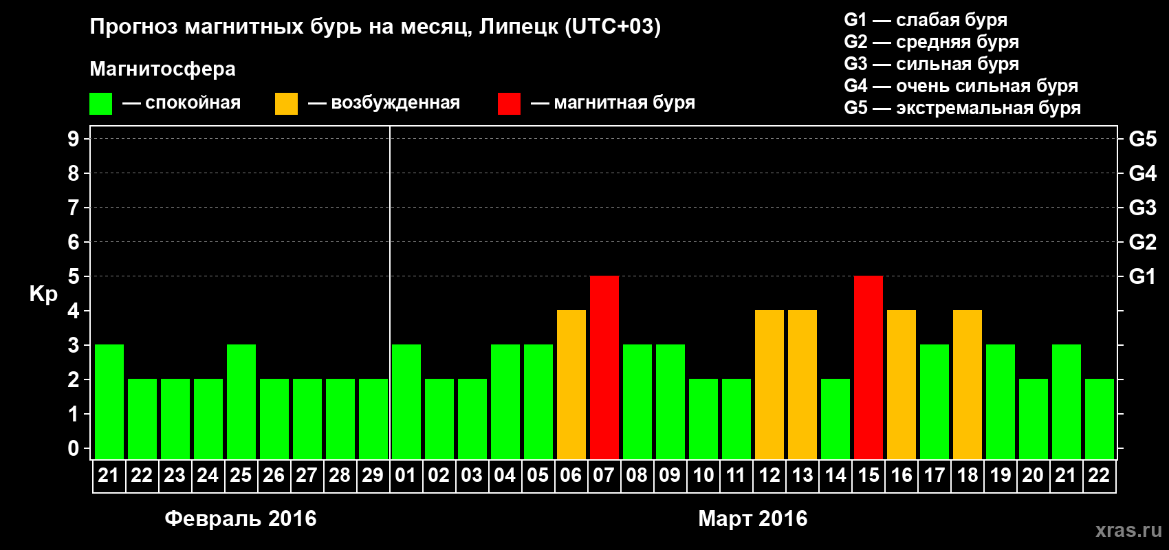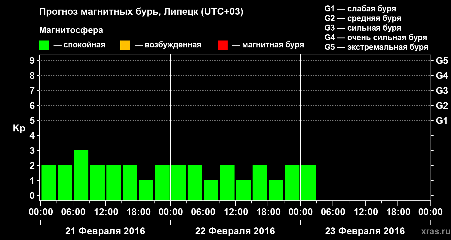 Прогноз магнитных бурь в Липецке — 21 февраля 2016 года