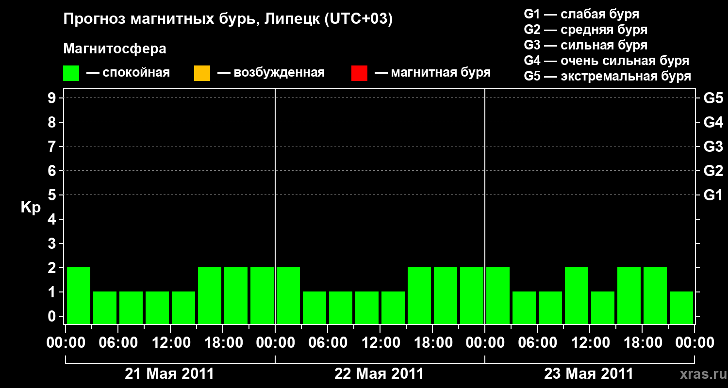 Прогноз магнитных бурь в Липецке — 21 мая 2011 года