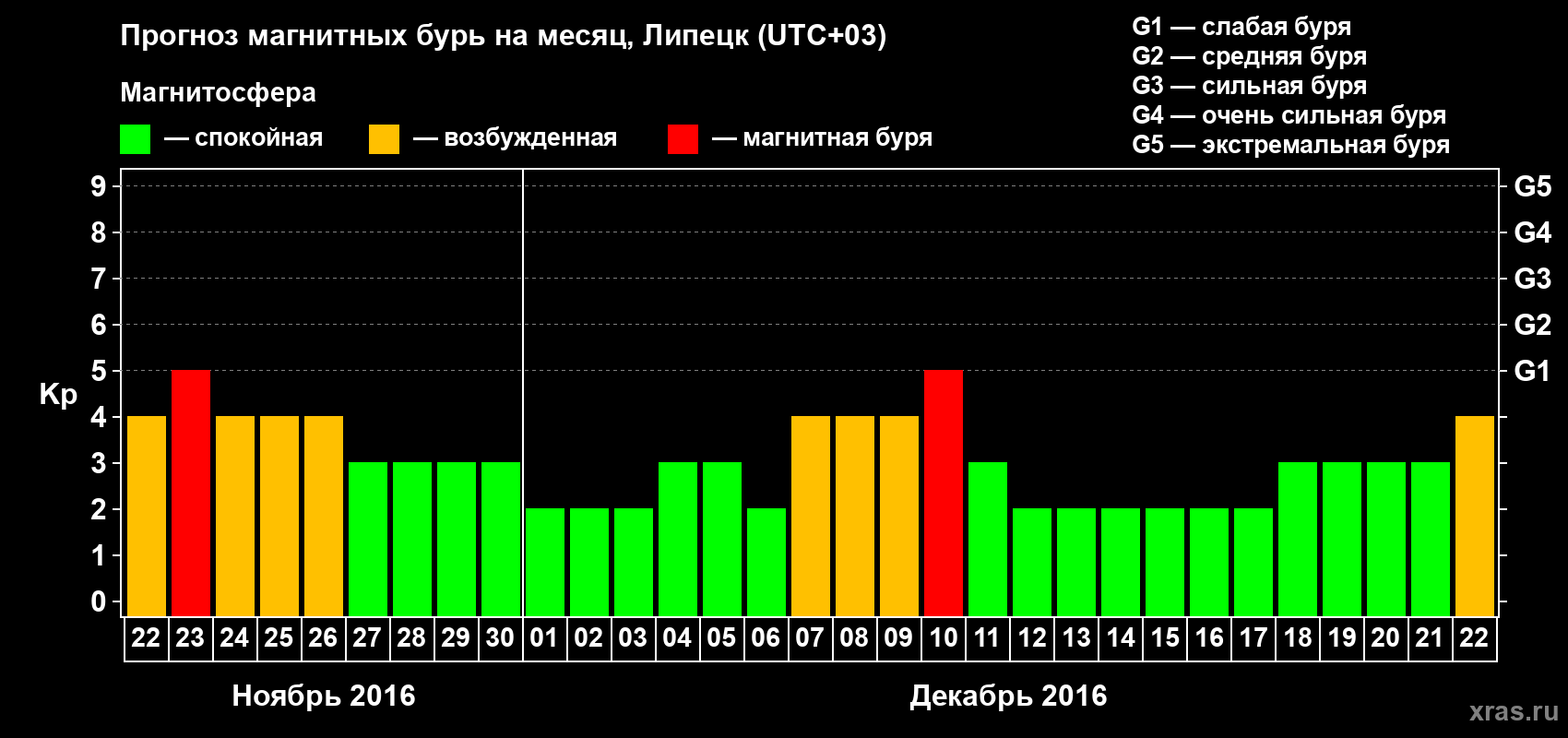 Прогноз магнитных бурь в Липецке — 22 ноября 2016 года