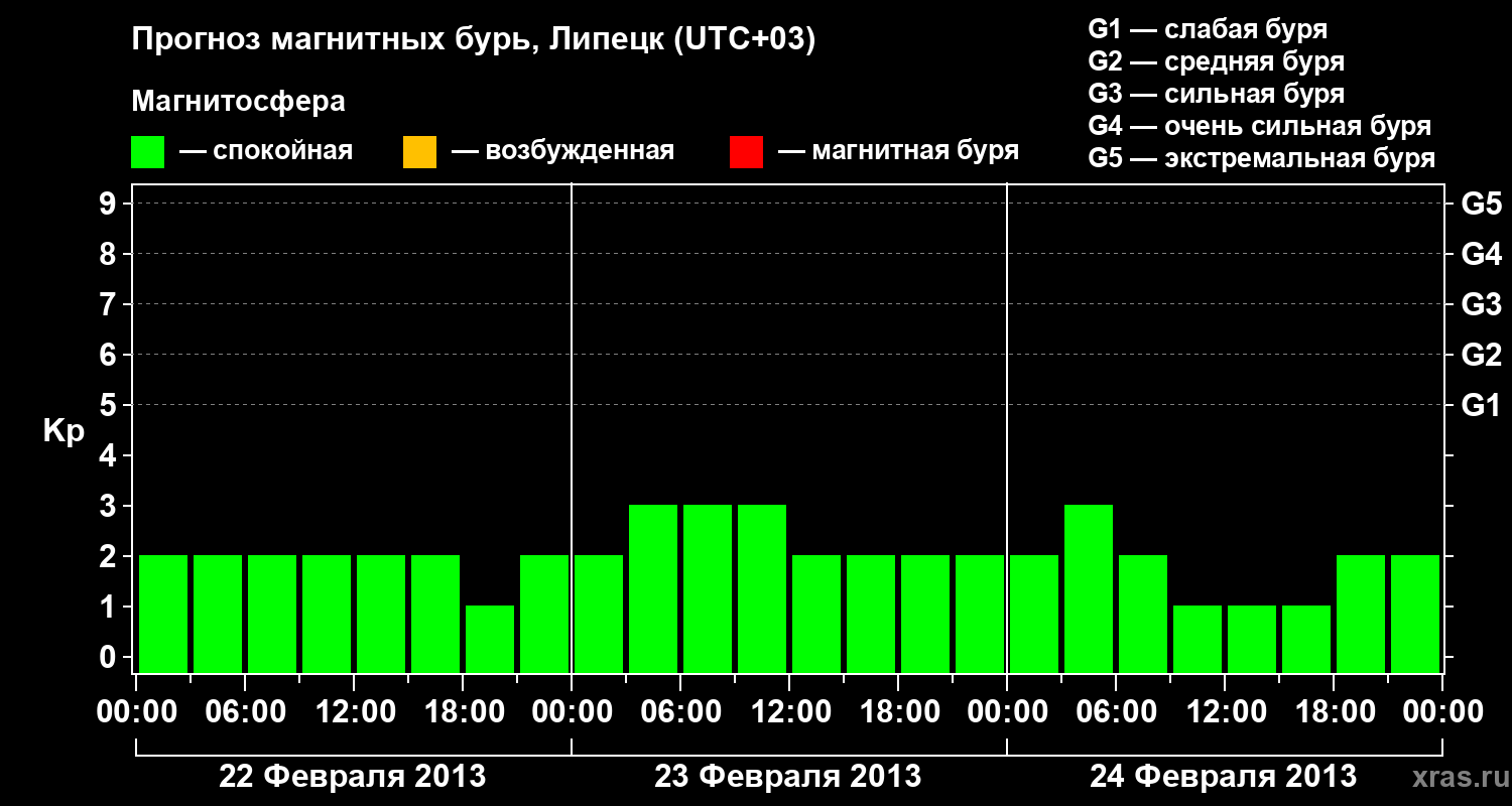 Прогноз магнитных бурь в Липецке — 22 февраля 2013 года