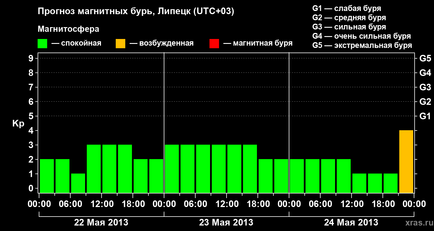 Прогноз магнитных бурь в Липецке — 22 мая 2013 года