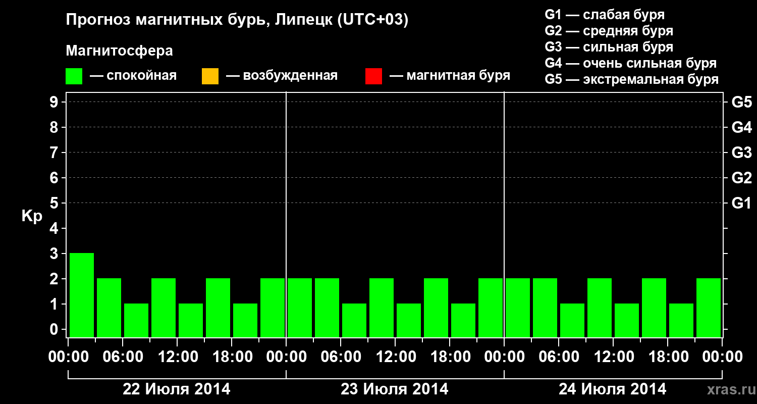 Прогноз магнитных бурь в Липецке — 22 июля 2014 года