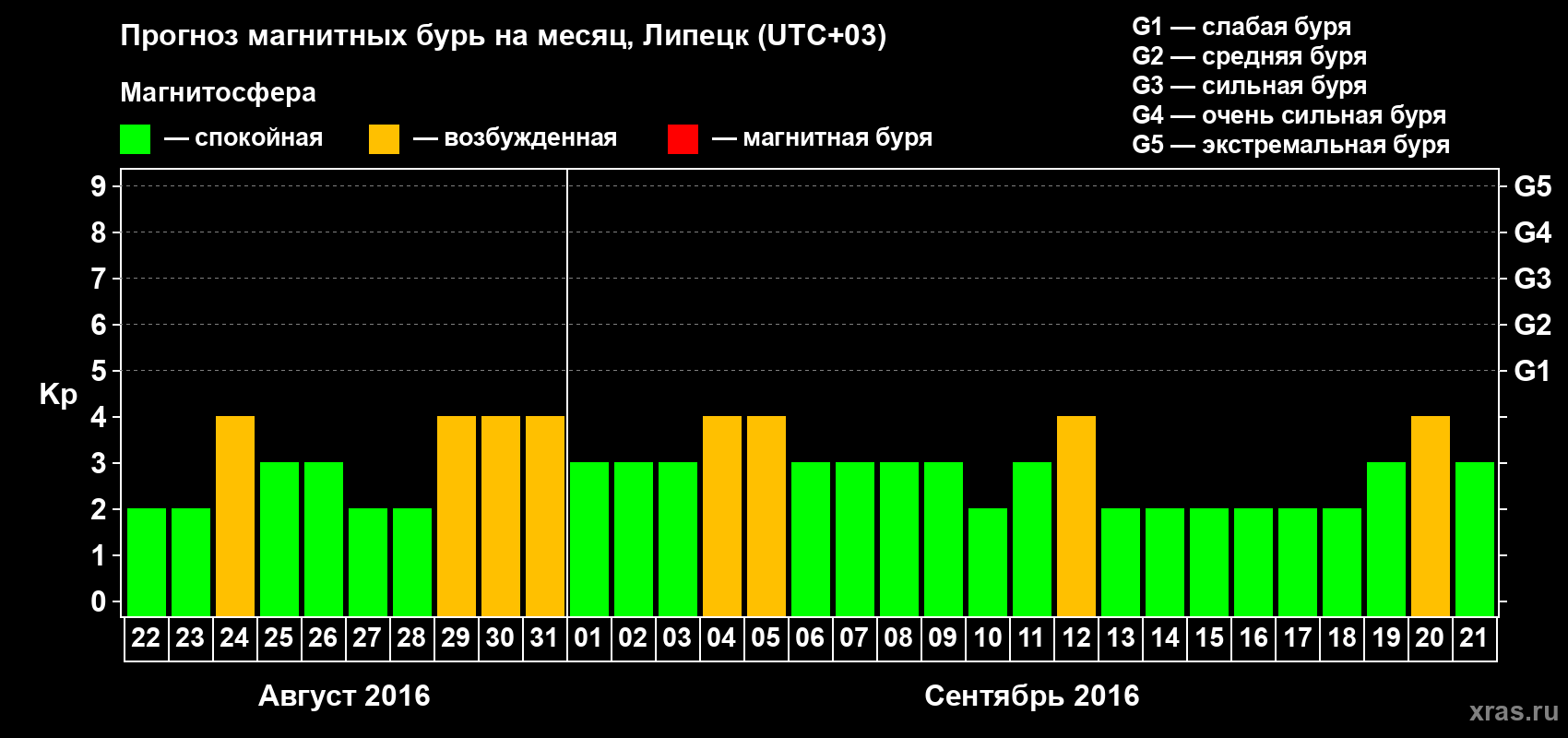 Прогноз магнитных бурь в Липецке — 22 августа 2016 года