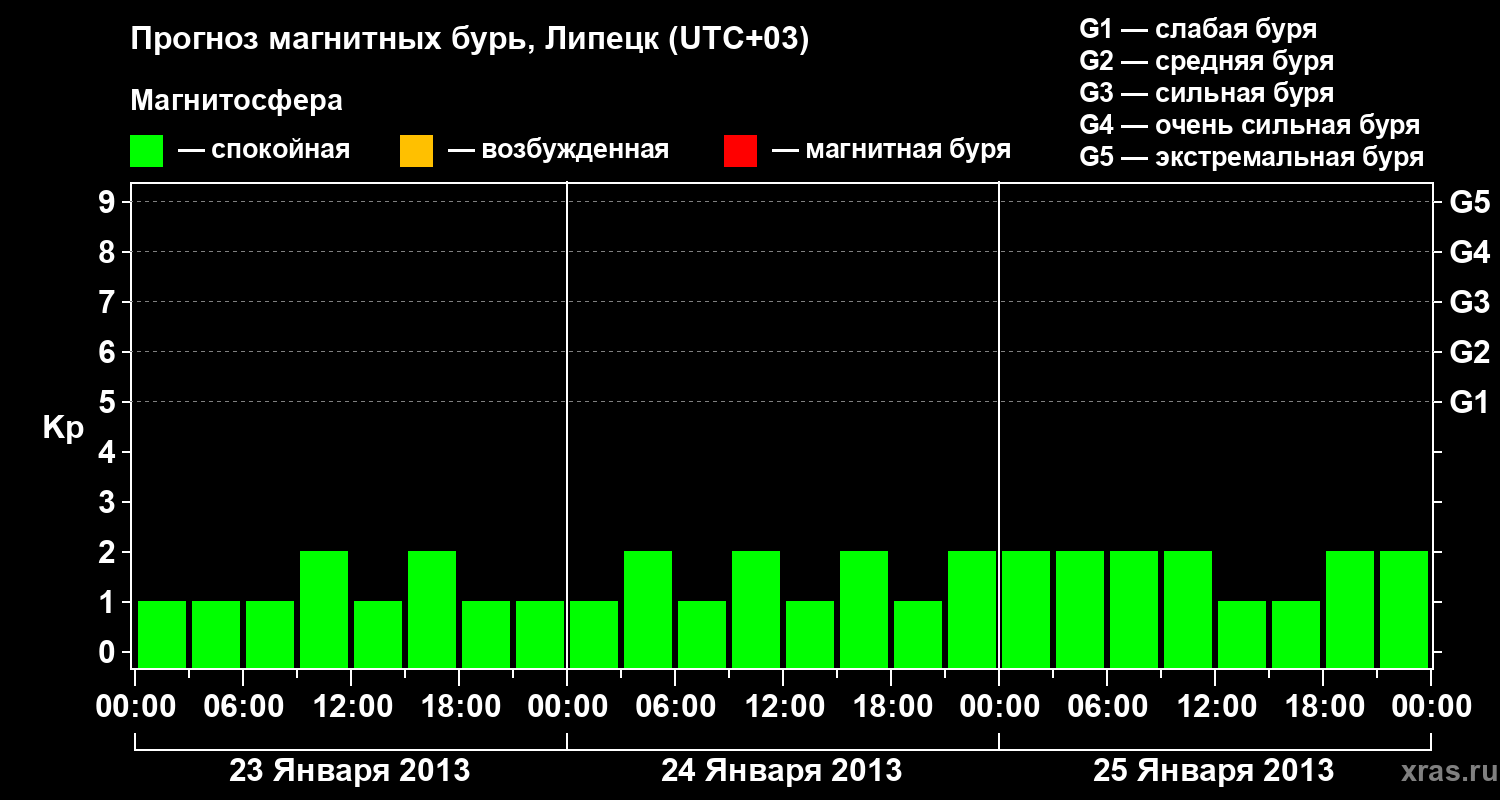 Прогноз магнитных бурь в Липецке на 23 января 2013 года