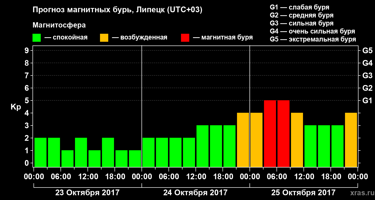 Прогноз магнитных бурь в Липецке на 23 октября 2017 года