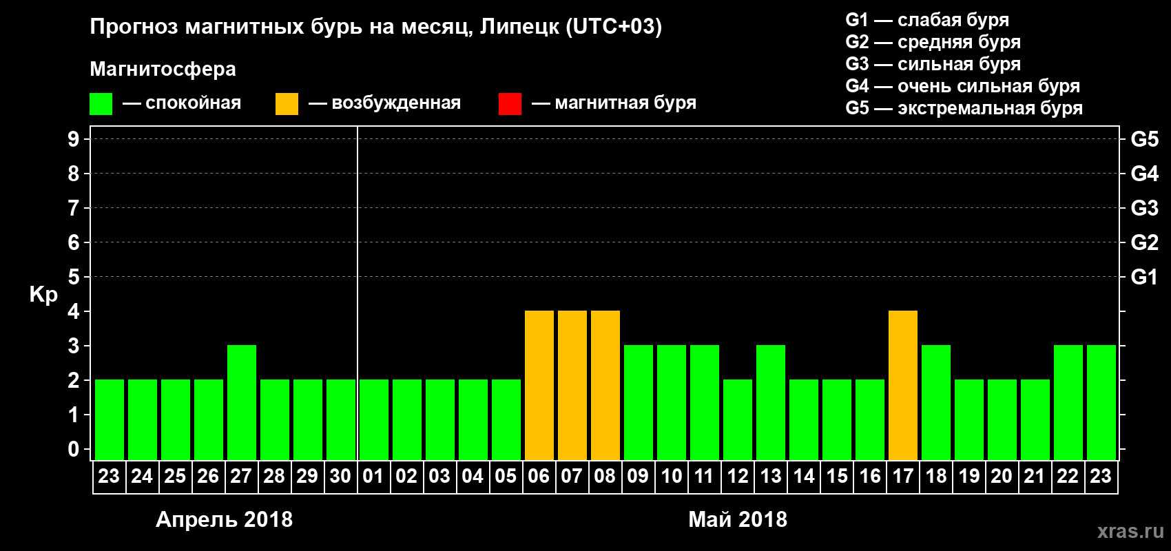 Прогноз магнитных бурь в Липецке — 23 апреля 2018 года