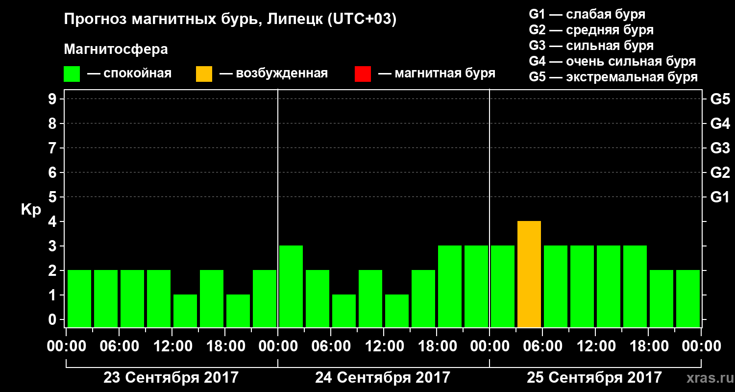Прогноз магнитных бурь в Липецке — 23 сентября 2017 года