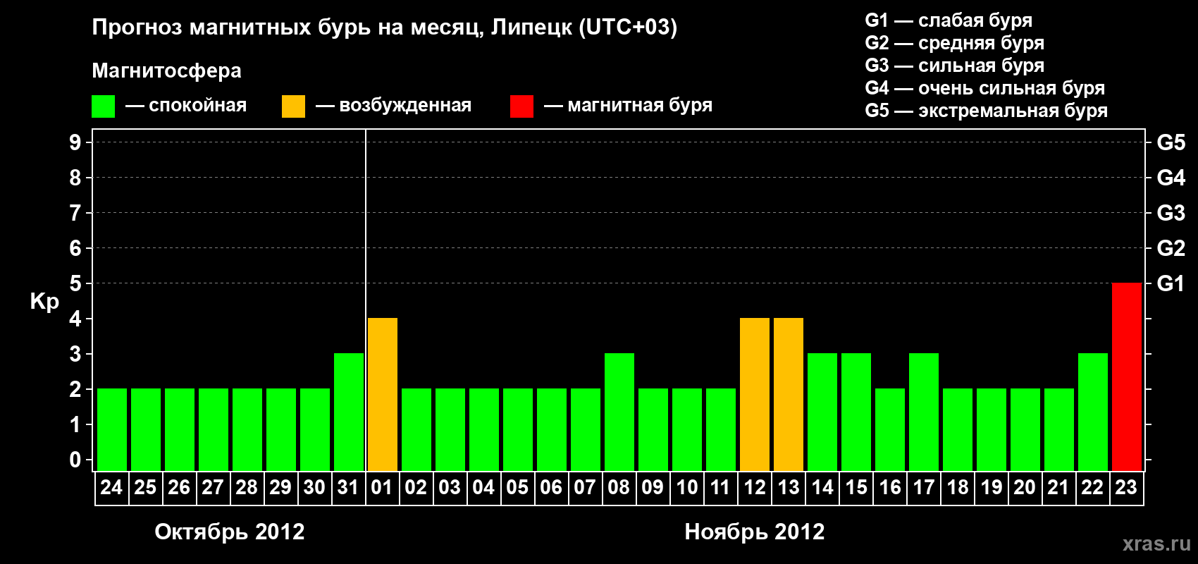 Прогноз магнитных бурь в Липецке на 24 октября 2012 года