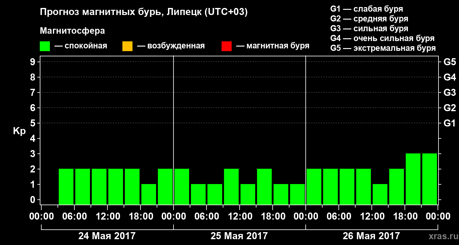 Прогноз магнитных бурь в Липецке на 24 мая 2017 года