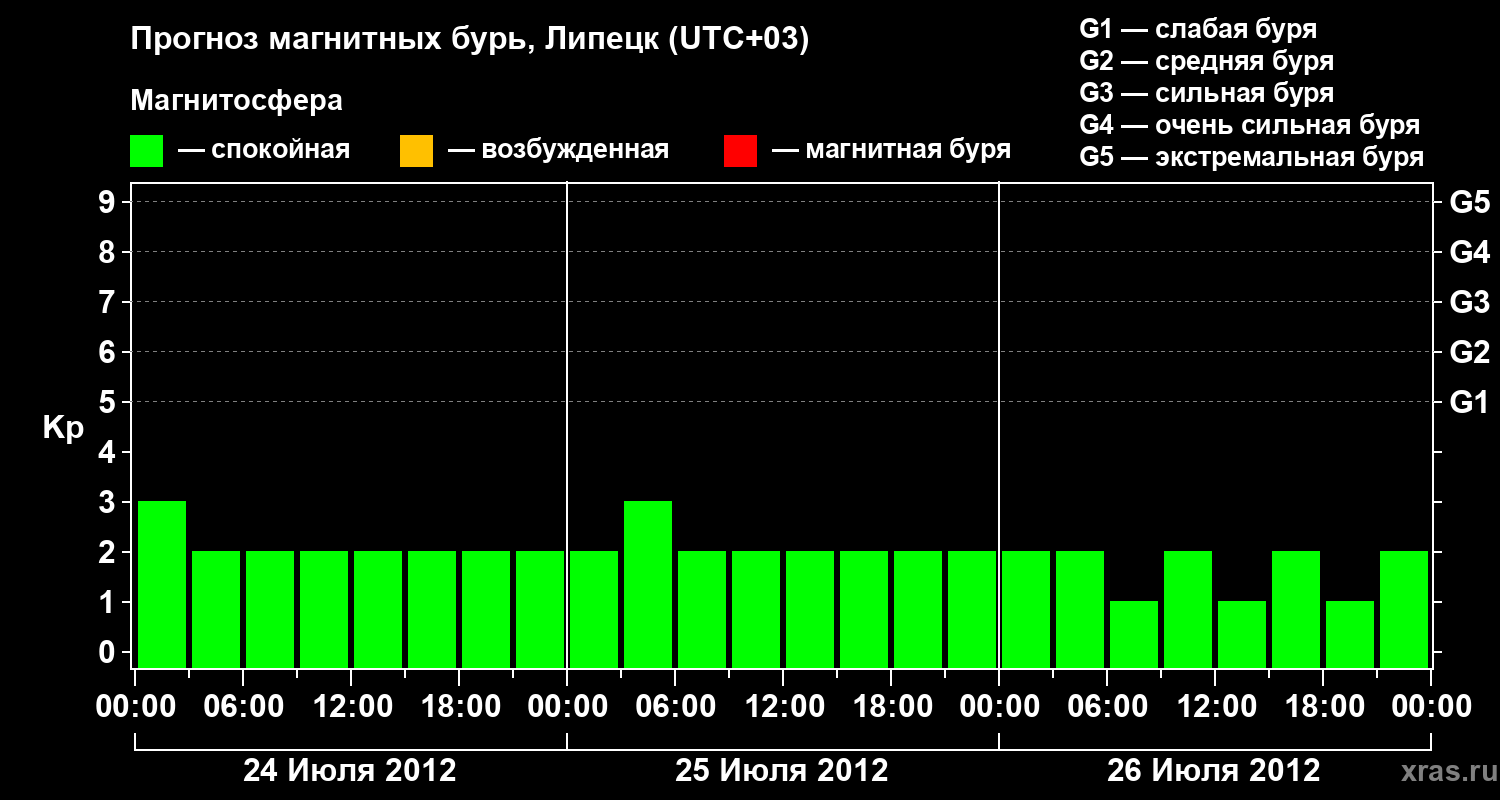 Прогноз магнитных бурь в Липецке — 24 июля 2012 года