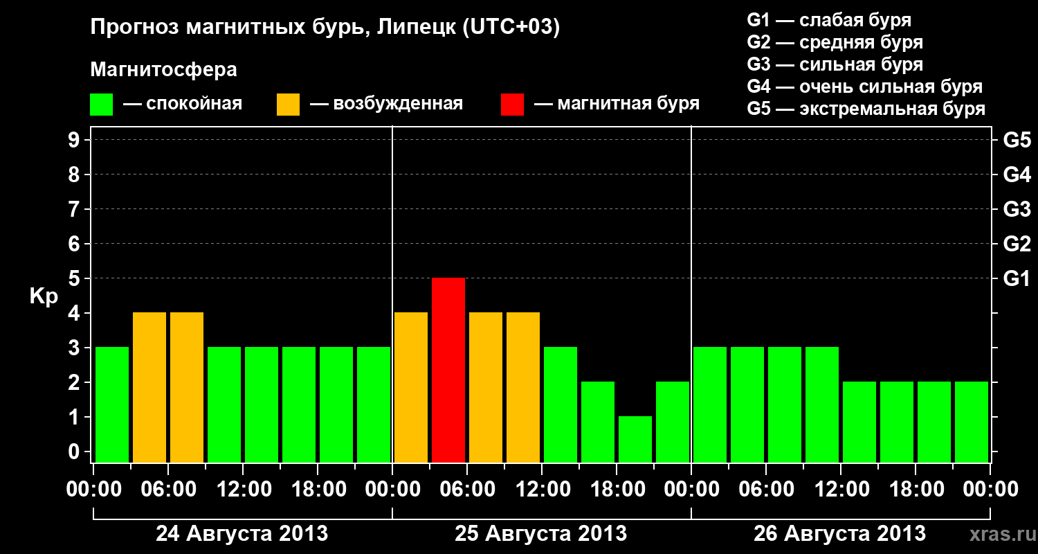 Прогноз магнитных бурь в Липецке — 24 августа 2013 года