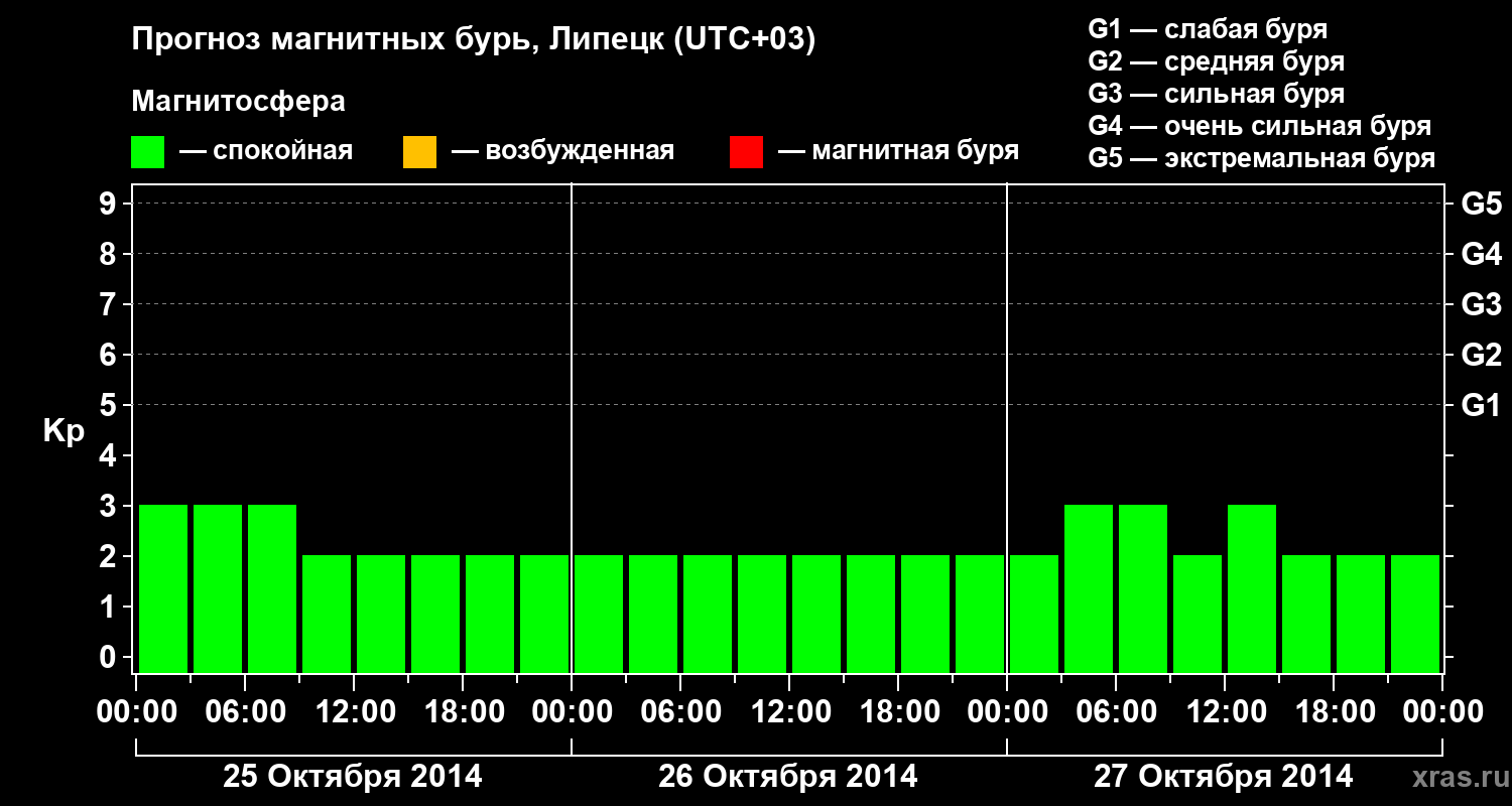 Прогноз магнитных бурь в Липецке — 25 октября 2014 года