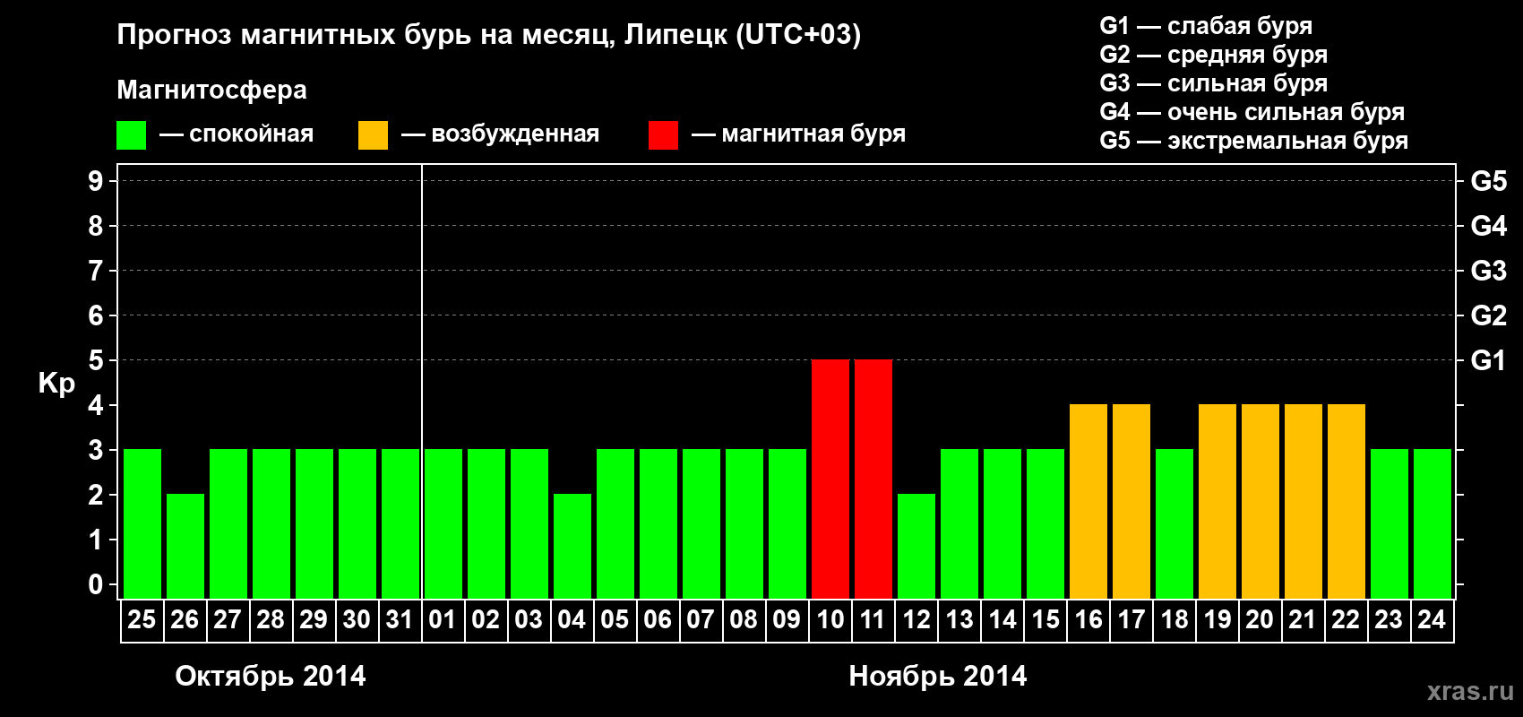 Прогноз магнитных бурь в Липецке на 25 октября 2014 года