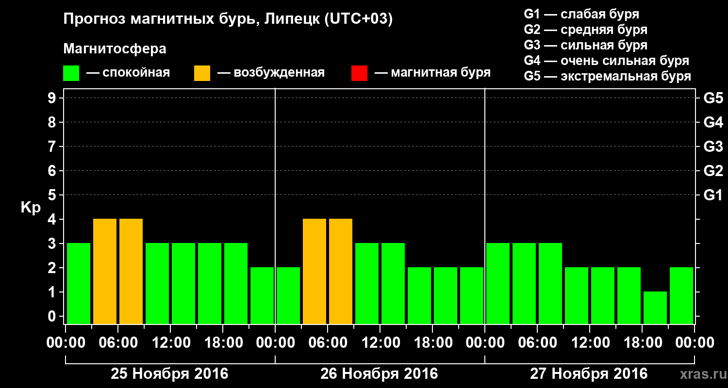 Прогноз магнитных бурь в Липецке — 25 ноября 2016 года
