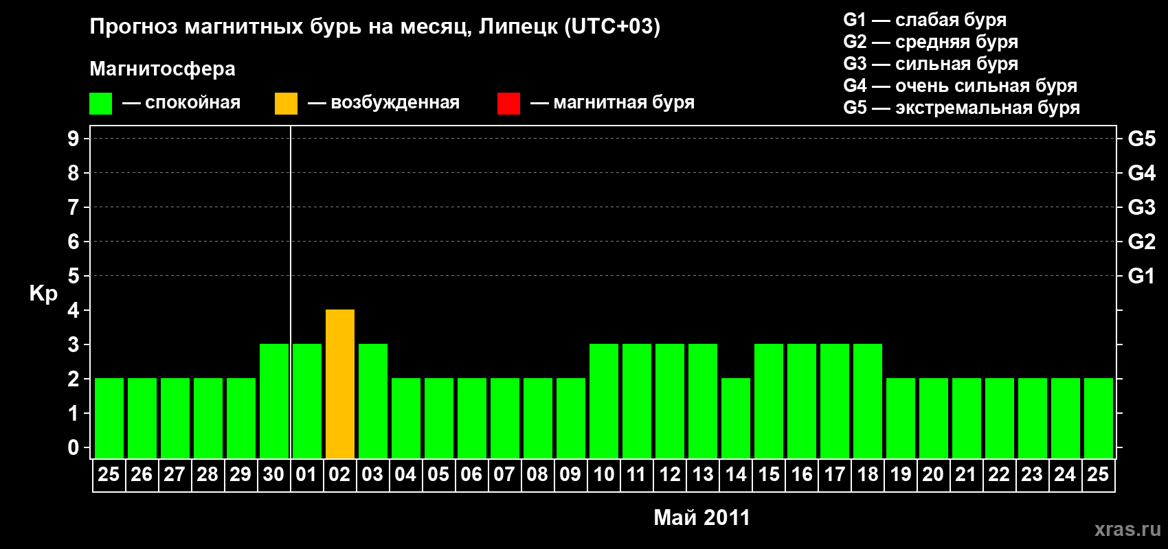 Прогноз магнитных бурь в Липецке — 25 апреля 2011 года