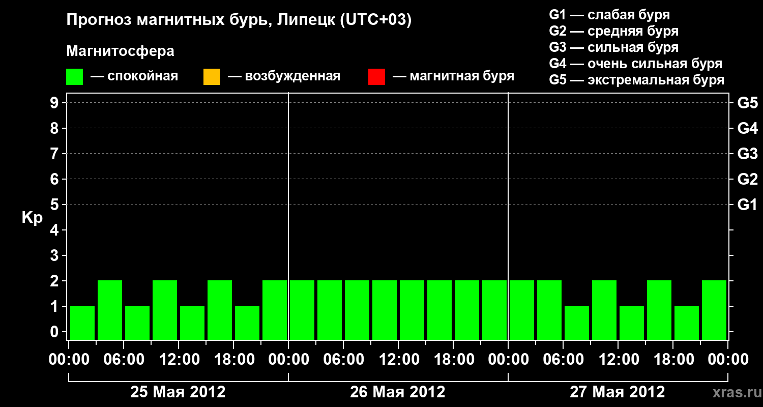 Прогноз магнитных бурь в Липецке — 25 мая 2012 года