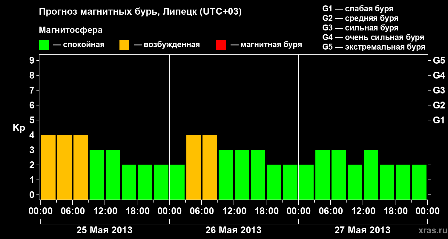 Прогноз магнитных бурь в Липецке — 25 мая 2013 года