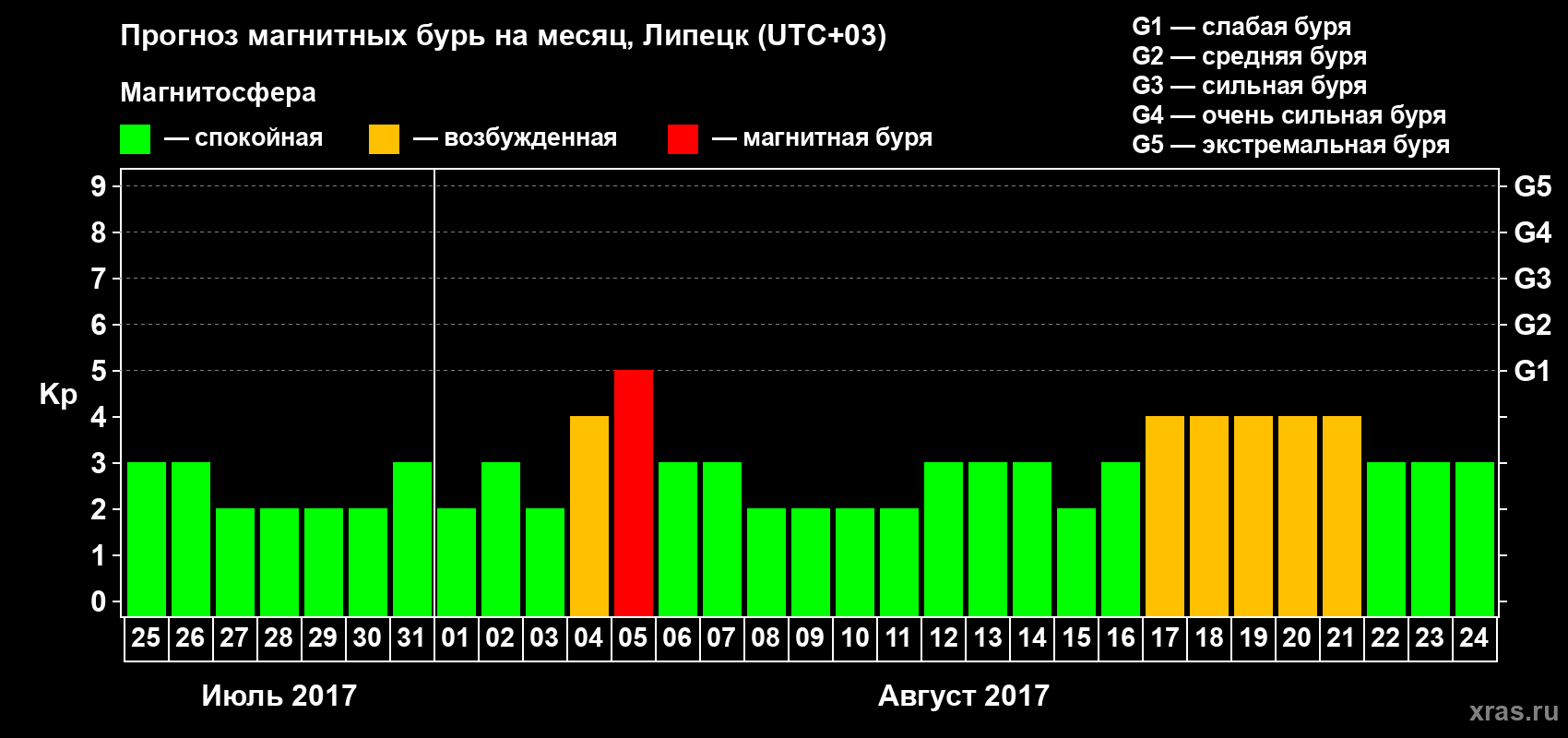 Прогноз магнитных бурь в Липецке — 25 июля 2017 года