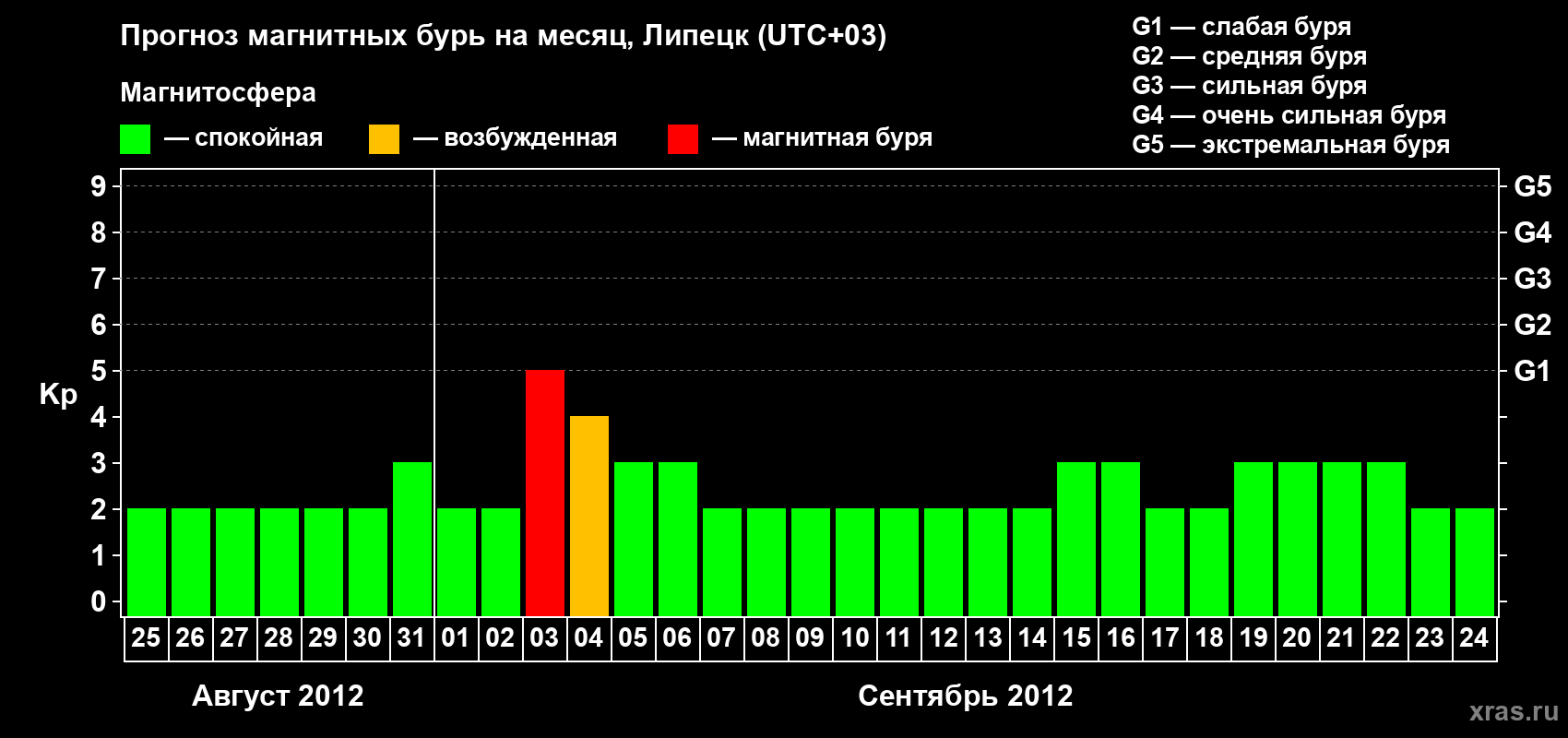 Прогноз магнитных бурь в Липецке на 25 августа 2012 года