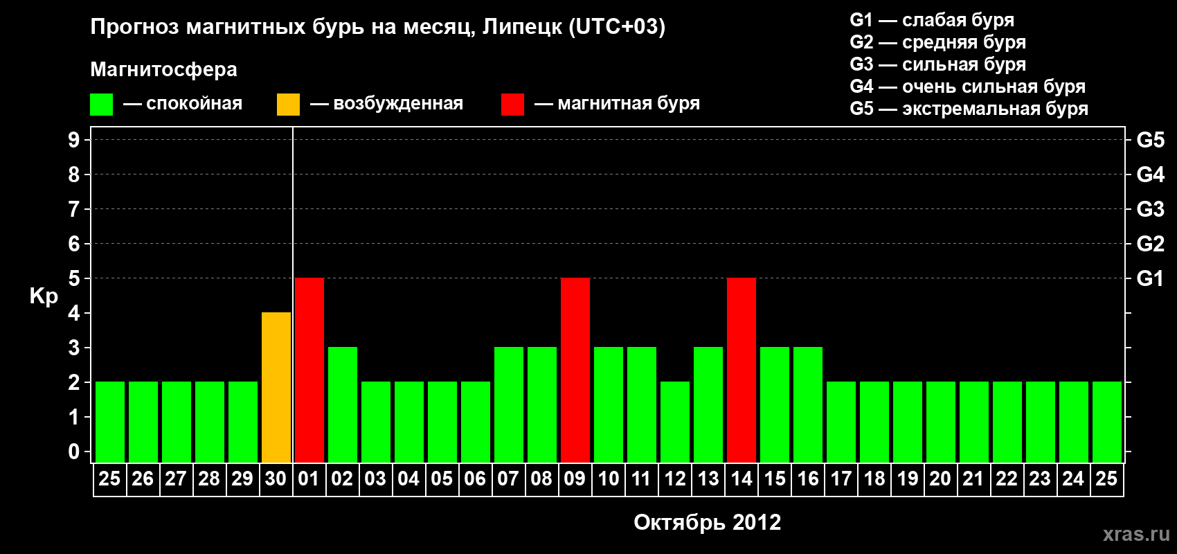 Прогноз магнитных бурь в Липецке — 25 сентября 2012 года