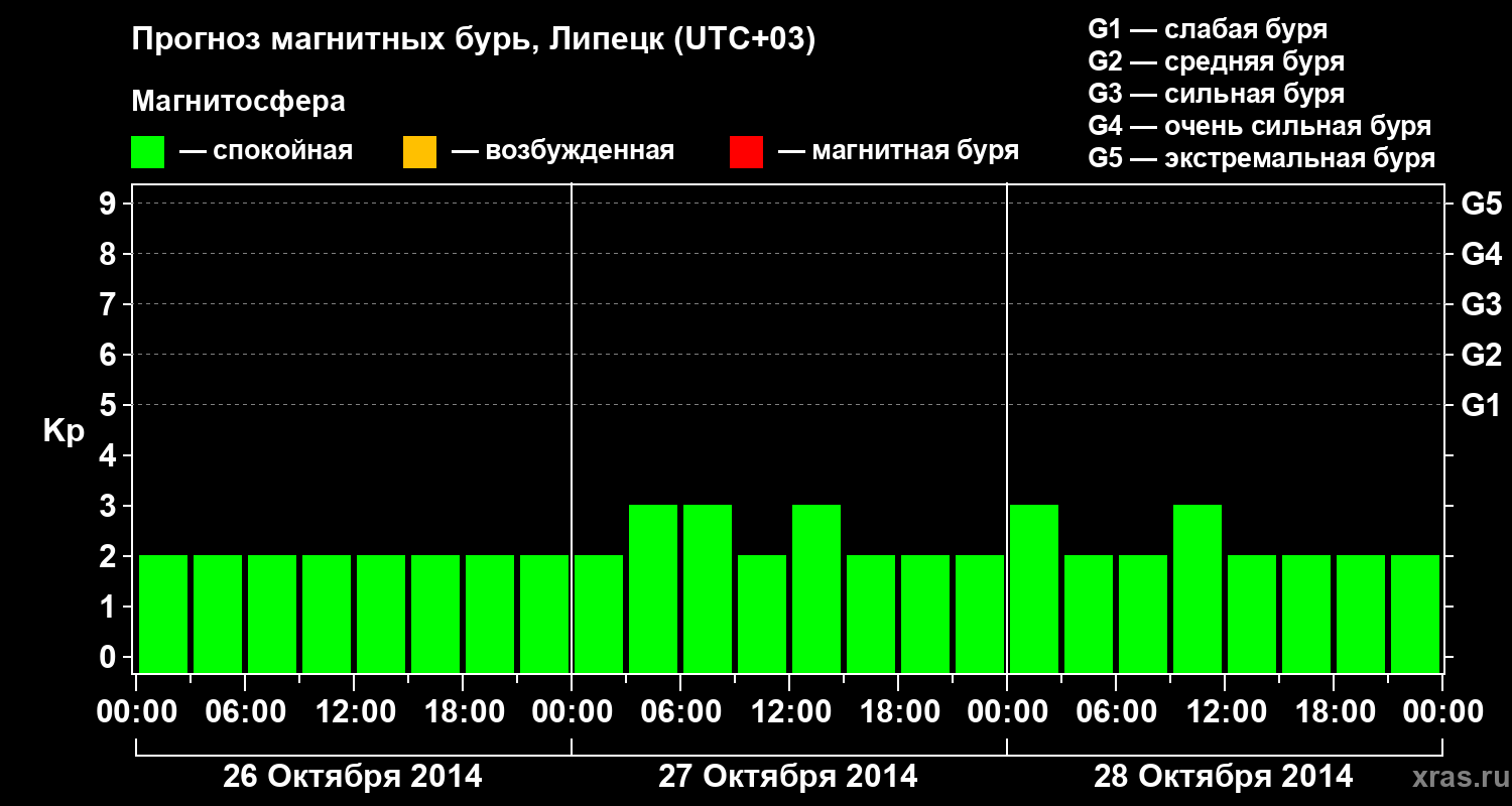 Прогноз магнитных бурь в Липецке на 26 октября 2014 года